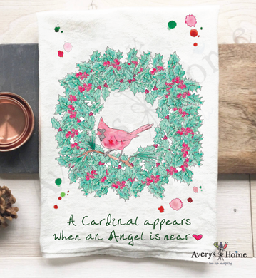 A Cardinal Appears when Angels are Near Winter Tea Towel